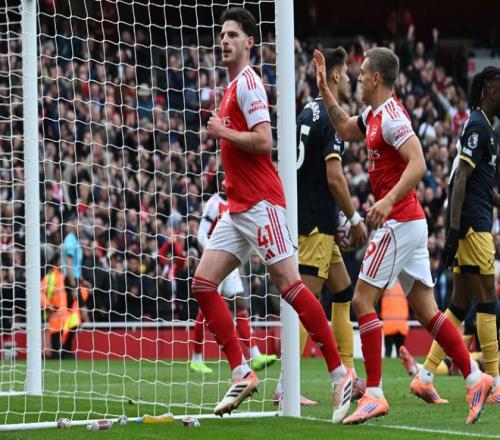 第32分鐘,薩卡右路一對一傳中,阿森納禁區(qū)圍攻連續(xù)打門被擋;第38分鐘,剛剛替換受傷厄德高上場的蘇比門迪直傳,埃反越位掃到門前被擋出,二點的賴斯大力抽射破門,1:0!考慮到西漢姆是自己的老東家,賴斯并沒有選擇慶祝。