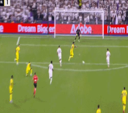 開場后皇馬沒有意外占據(jù)主動權(quán),只是遲遲未能收獲進球;第7分鐘,姆巴佩禁區(qū)線接球直塞,居萊爾前插不停球低射稍稍偏出;第20分鐘,維尼修斯左路內(nèi)切閃開空間傳中,楚阿梅尼高高躍起頭球稍稍偏出;1分鐘后,皇馬高位壓迫形成反搶,姆巴佩無私橫敲,馬斯坦托諾點球點無人盯防之下正對球門的抽射卻被韋加解圍。第27分鐘,馬斯坦托諾傳中,楚阿梅尼頭球攻門高出;第41分鐘,奧盧瓦塞伊單刀射門,庫爾圖瓦力保球門不失。