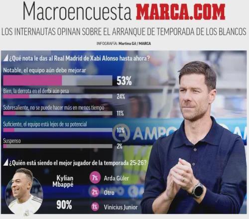 雷速體育10月8日?qǐng)?bào)道宣稱(chēng) 今天《馬卡報(bào)》進(jìn)行了一項(xiàng)民意調(diào)查,對(duì)皇馬換帥之后的新賽季至今的表現(xiàn)進(jìn)行了評(píng)價(jià)。