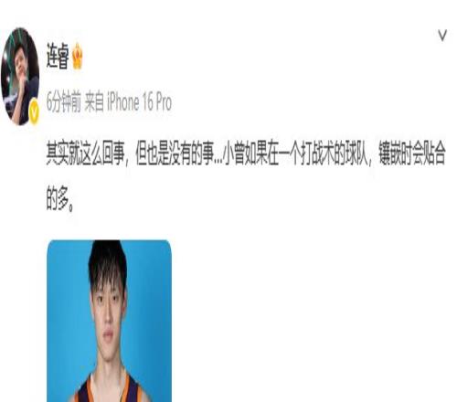 媒體人連睿點(diǎn)評(píng)了曾凡博和籃網(wǎng)隊(duì),連睿表示:其實(shí)就這么回事,但也是沒有的事,小曾如果在一個(gè)打戰(zhàn)術(shù)的球隊(duì),鑲嵌時(shí)會(huì)貼合的多。