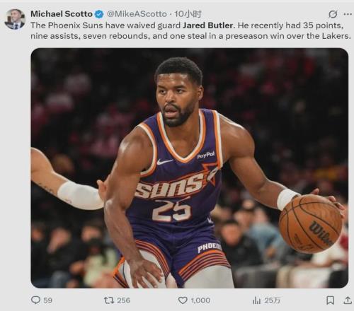 北京時間10月19日,菲尼克斯太陽官方宣布,正式裁掉賈里德-巴特勒,同時給喬丹-古德溫一份正式合同。兩人都是后衛(wèi),也是直接競爭關(guān)系,此前都是訓練營合同。記者Keith Smith表示,太陽應該同時留下他倆,增加1號位深度。