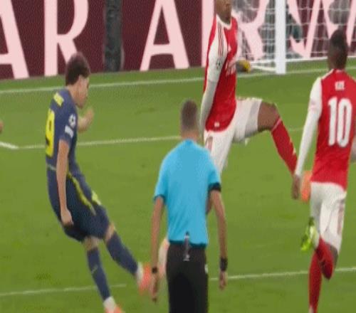 第37分鐘,蘇比門迪中場搶斷,隨后策動反擊,薩卡禁區(qū)右側(cè)傳中,馬丁內(nèi)利搶點破門,可惜越位在先,阿森納空歡喜一場。