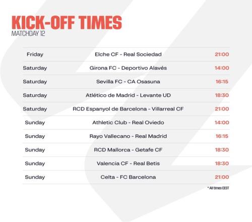 2025/26賽季西甲聯(lián)賽賽程已近三分之一,第12輪爭(zhēng)奪即將打響。本輪多場(chǎng)對(duì)決頗具看點(diǎn),尤其皇家馬德里與巴塞羅那雙雙客場(chǎng)作戰(zhàn),挑戰(zhàn)重重。