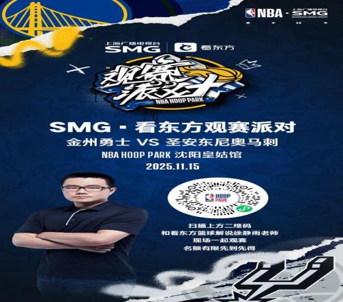 本周六,NBA杯小組賽,馬刺主場迎戰(zhàn)勇士,文班亞馬與庫里將上演新老球星巔峰對決!SMG看東方邀請在沈陽的老鐵們,一起來觀賽派對嗨起來!