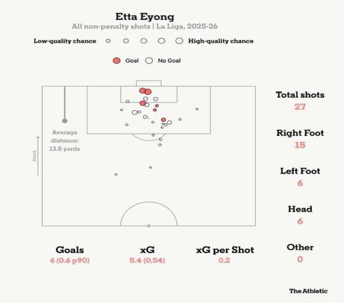 近日,The Athletic發(fā)表專題文章,分析了最近表現(xiàn)出色的萊萬特球員埃永,他最近得到了多家豪門的專題,TA表示他擁有超高的效率與超強(qiáng)的門前嗅覺,此外他還有全面多樣的技術(shù)特點(diǎn),以下為專題文章。