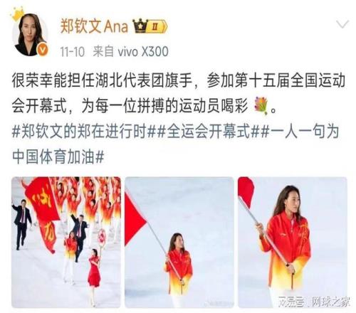 言下之意是,鄭欽文擔(dān)任湖北隊的旗手,不僅電視轉(zhuǎn)播時給了她將近30分秒的特定鏡頭,而且很多人更是大贊鄭欽文英資颯爽,憑借全運會旗手這件事狂收割了一波流量??墒亲詈髤s在全運會網(wǎng)球單打即將開始之際,突然以傷病為由退賽了。