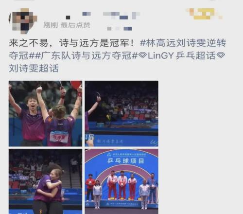 這也是劉詩雯第六次參加全運會。劉詩雯上一屆與許昕搭檔混雙奪冠后,本屆全運會和林高遠混雙再次奪冠。